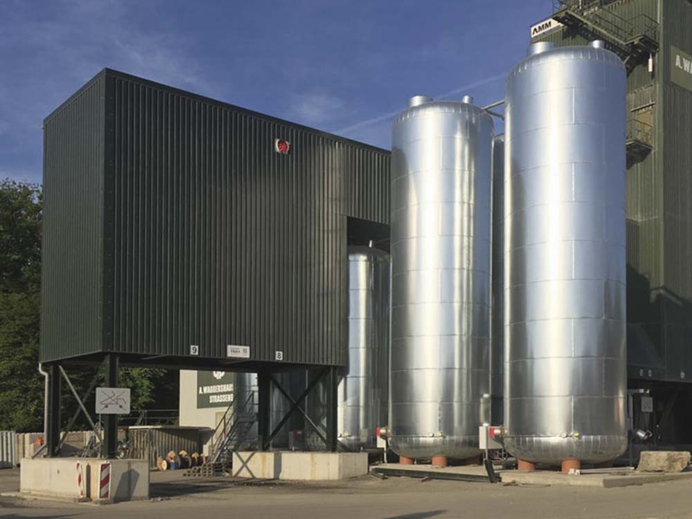 Rolled asphalt silo plants, which have a horizontal feeding device and a filling capacity of 40 to 1200 tons, can be seamlessly combined with any asphalt mixing plant.
